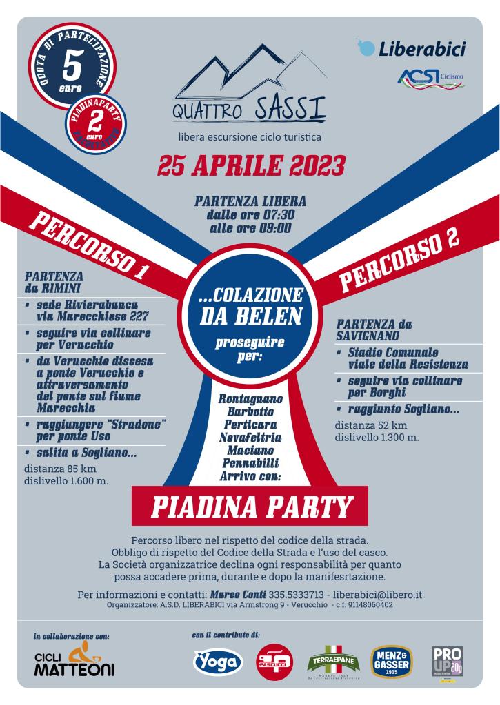 Si proseguirà poi fino a Pennabilli dove concluderemo con l’immancabile Piadina Party.
